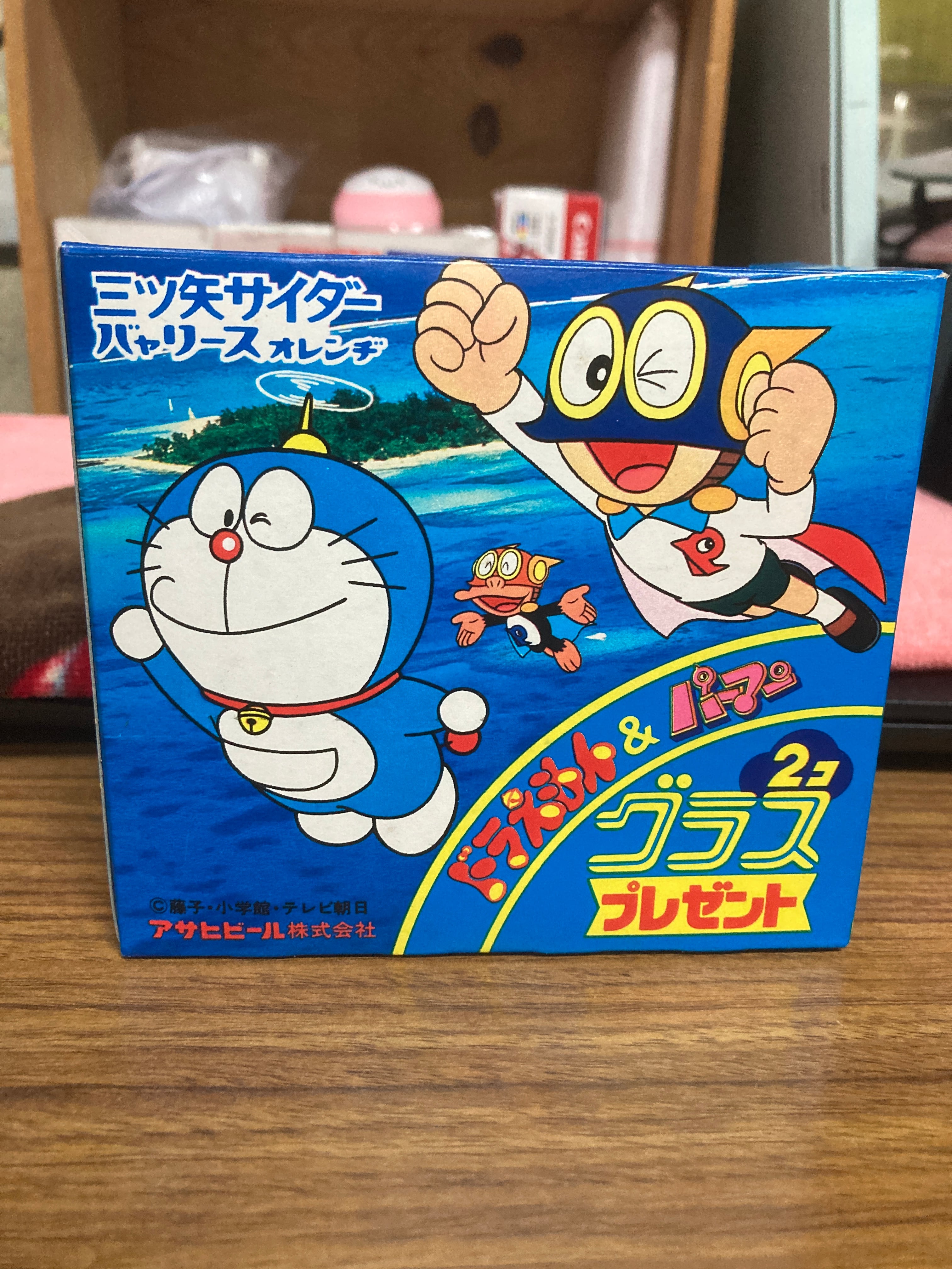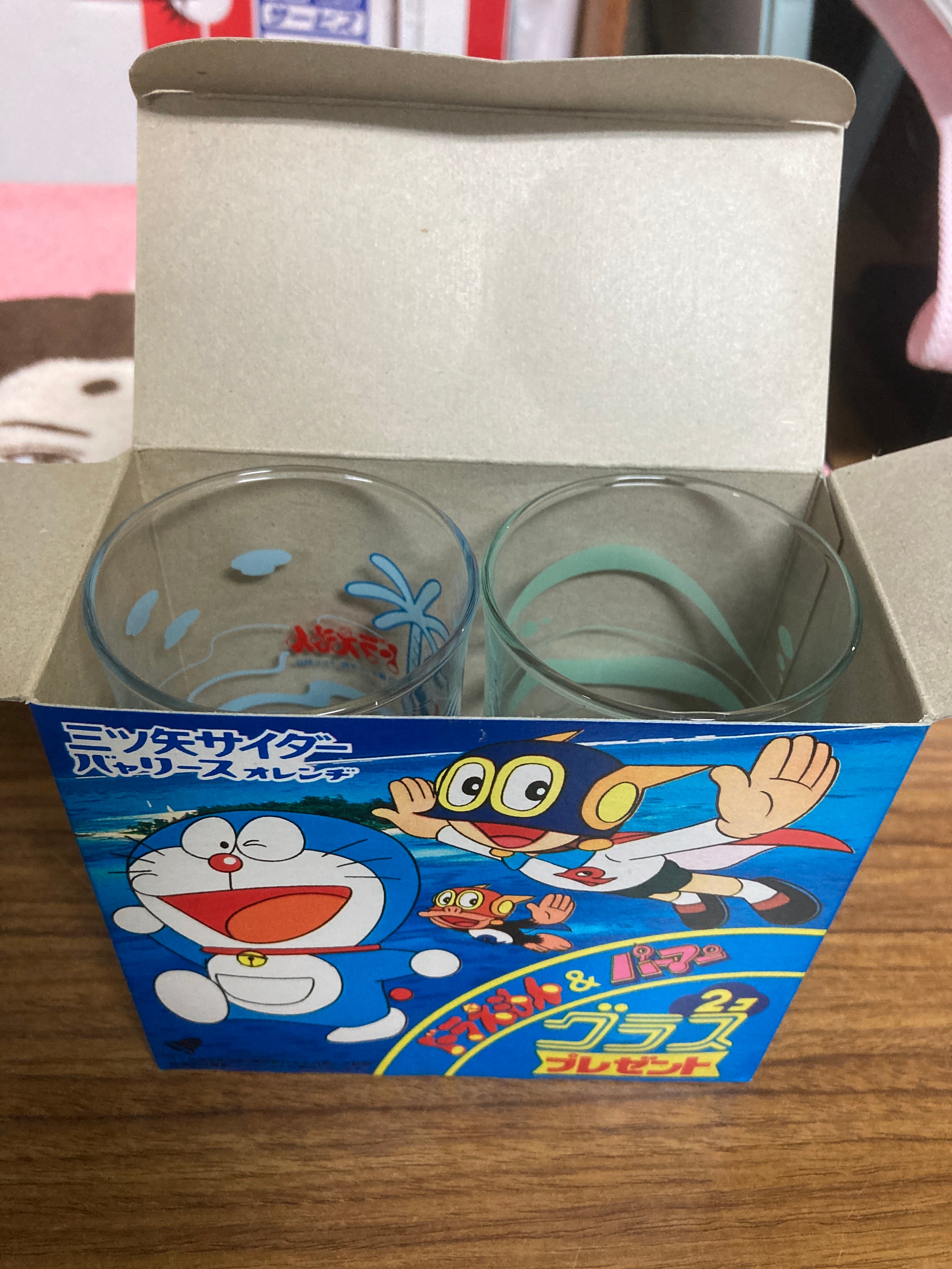 アサヒ三ツ矢サイダーと人気アニメキャラクター★ドラえもん♡パーマンのコラボグラスになります。キャラクターはグラスにプリントされてます。レトロ♡グッズになりますので多少の汚れや傷などがあるかもしれません。その点もご理解の上、ご購入願います。完全未使用品になります。